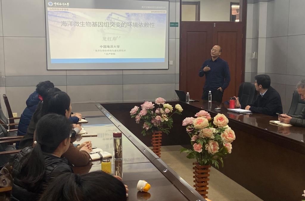 点击:12月10日,成人在线 2021年第119期名家讲坛在J4-321报告厅举行。中国海洋大学海洋生物多样性与进化研究所龙红岸教授受邀来成人在线作报告,报告主题为“海洋微生物基因组突变的环境依赖性”。报告由成人在线 曹晓强副院长主持。成人在线 骨干教师、研究生参加了本期学术报告。