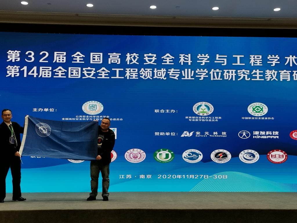 由于我校在去年已成功获得明年的全国高校安全科学与工程学术年会的主办权,在本次会议闭幕式中的交接旗仪式上周刚副院长从南京工业大学安全科学与工程成人在线 潘旭海院长手中接过会旗,意味着我校全面进入下届年会的筹备阶段。