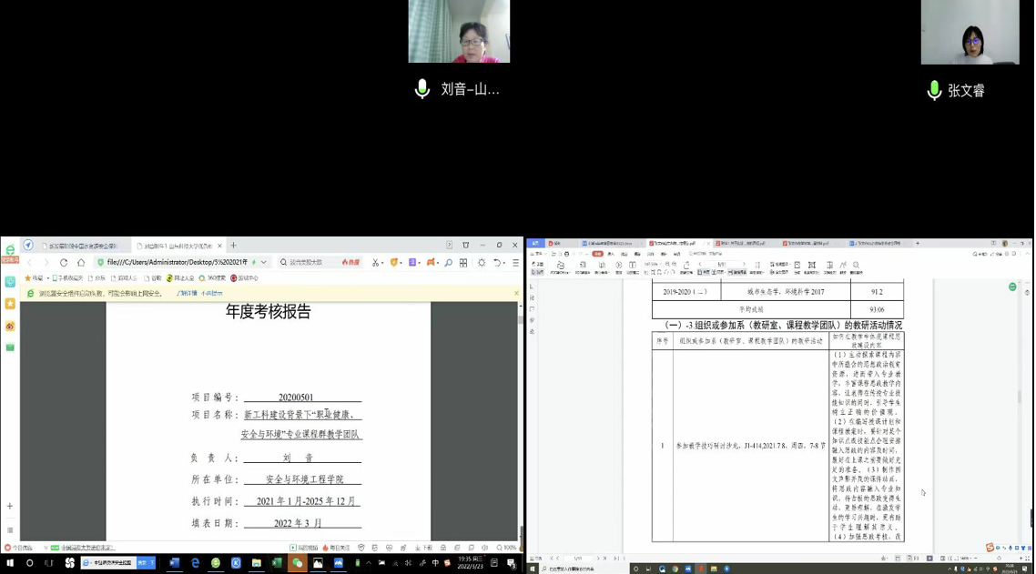 此次评议工作针对“2020年度成人在线 教学名师培养计划项目”和“青年教师教学拔尖人才培养项目”两个项目开展。项目负责人分别提交了《年度考核报告》与《年度进展报告》及对应的支撑材料,并向专家组成员分别就项目合同任务目标、年度任务完成情况、目前已取得成果、下一步工作计划、后续改进措施、经费使用情况等内容作了详细汇报。专家组成员根据目标任务完成要求,重点对项目年度研究成果是否达到考核目标以及经费使用情况进行了认真评议。