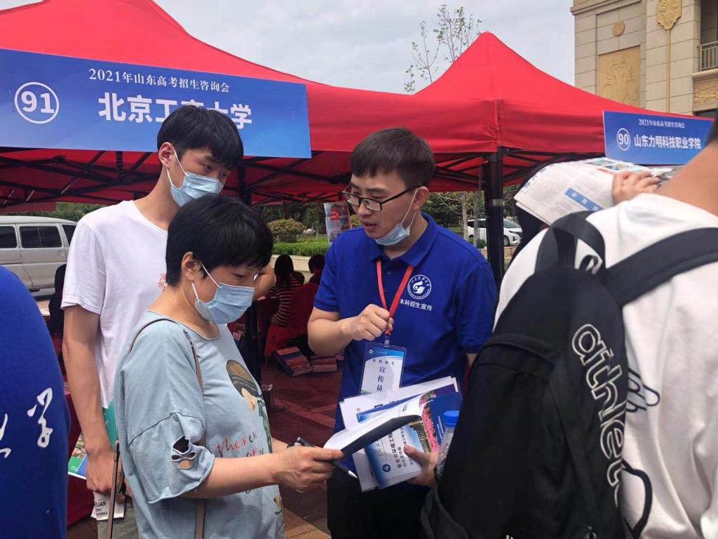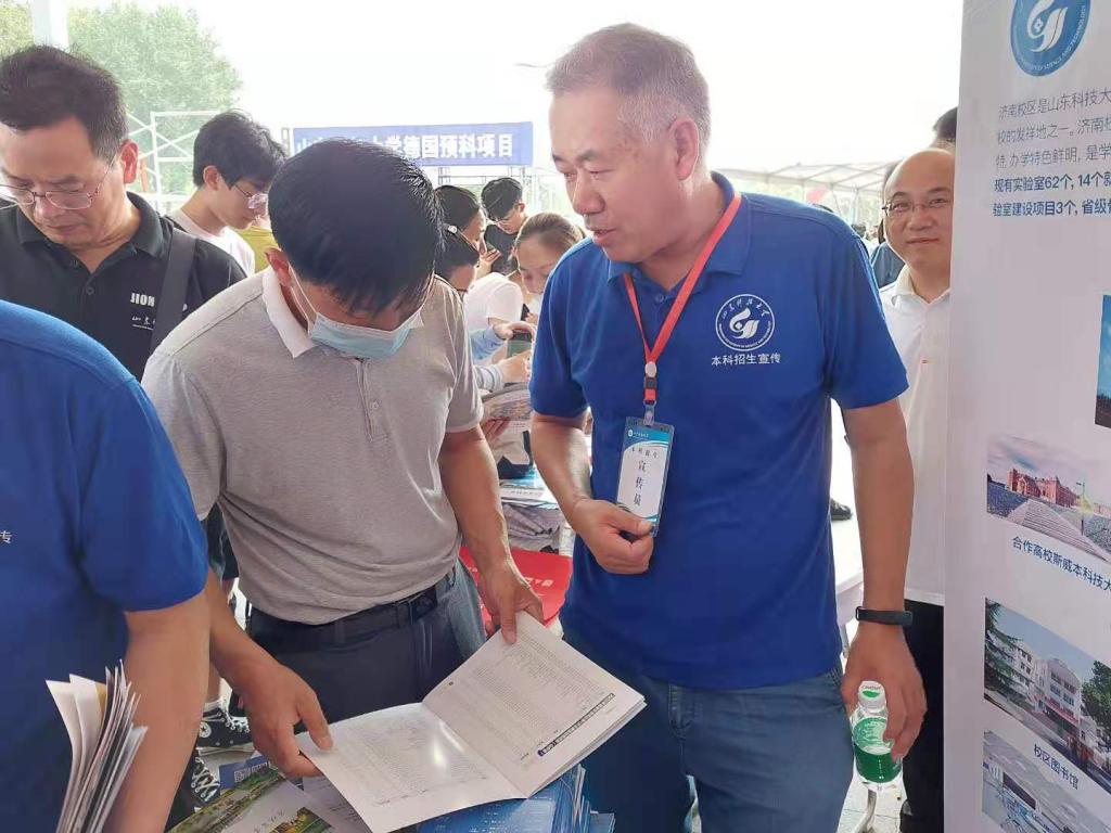 在招生咨询现场,招生老师们为学生和家长发放了学校的招生简章和成人在线 的专业简介,细致耐心地为学生和家长们介绍了山科大的优势专业和报考方法,针对学生的高考分数和名次以及学生的兴趣爱好和个人特点为考生推荐本校适合的专业。在每一个招生点都可以看到山科大的摊位被热情的学生及家长围着,是最火爆的招生摊位。招生老师们克服了交通不便和恶劣天气的困难,即使嗓子都沙哑了,但是只要有学生和家长来咨询,他们马上又开始为家长和考生答疑解惑。