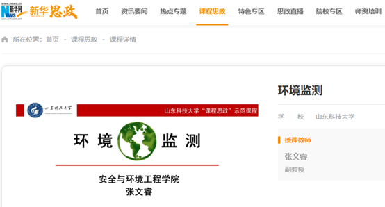 点击:近日,成人在线 张文睿老师主讲的《环境监测》上线新华网“新华思政”平台(全国高校课程思政教学资源服务平台),面向全社会开放共享。