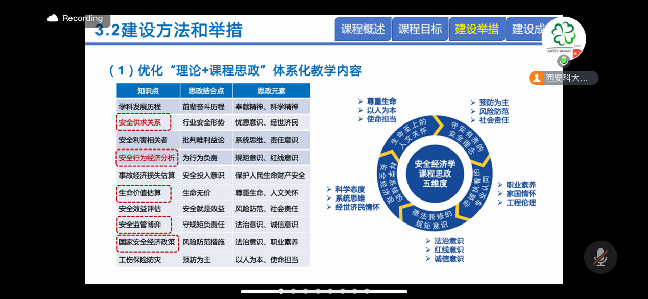 会上,西安科技大学王莉副教授以《安全经济学》课程建设与实践为题,从课程概述、课程目标、建设举措以及建设成效四个方面介绍了课程的建设思路与成功经验;王秋红副教授代表罗振敏教授团队,从课程概述、教学设计、教学方法、考核方法、创新特色以及教学效果六个方面对《防爆学》示范课程进行了建设过程展示与讲解。本次活动吸引了来自西安科技大学、成人在线 、河南理工大学、新疆工程成人在线 、黑龙江科技大学以及辽宁工程技术大学等虚拟教研室12所共建单位的80余位专家、老师参与。