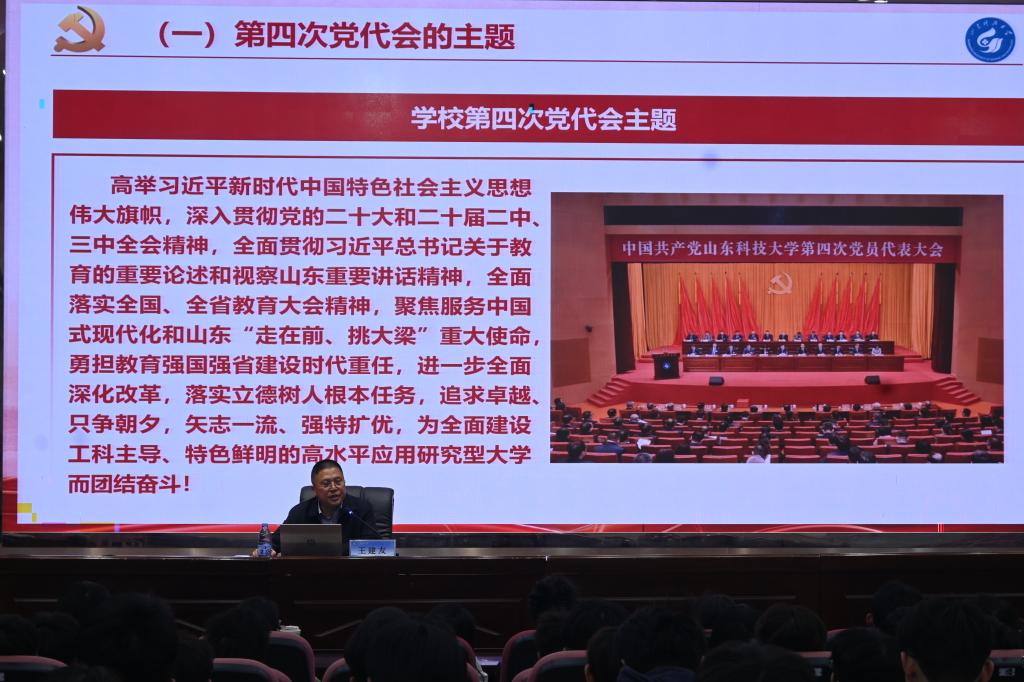2025-04-274月24日,成人在线 党委副书记兼副院长王建友、学校党委办公室(学校办公室)副主任杜军为所联系的学生班级——2023级安全工程1班、职业卫生工程1班作学校第四次党代会精神的宣讲报告,学习宣传学校第四次党代会精神,教育引导学生把思想和行动统一到学校第四次党代会精神上来,响应大会号召,把报效祖国作为最大追求,把服务人民作为最大责任,把奉献社会作为最大价值,以更加饱满的热情投入到学习生活中,不断提升自身...