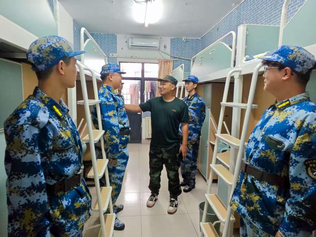 2025-09-12为锤炼新生严谨细致的作风,从生活点滴中培养自律与规范的意识,军训教官及2025级本科生辅导员刘雨池带领成人在线 全体本科新生在学生公寓开展内务整理活动。训练场上雷厉风行的教官,在宿舍里化身细节控。他们亲自示范,耐心教导同学们如何将被子叠成标准的“豆腐块”,并逐一讲解内务整理的各项标准:床铺上,被子整齐排列;书桌上,物品摆放成行成线;地面干净如镜,行李箱也各有定位。刘雨池细致检查了每个宿舍的内务情况,...